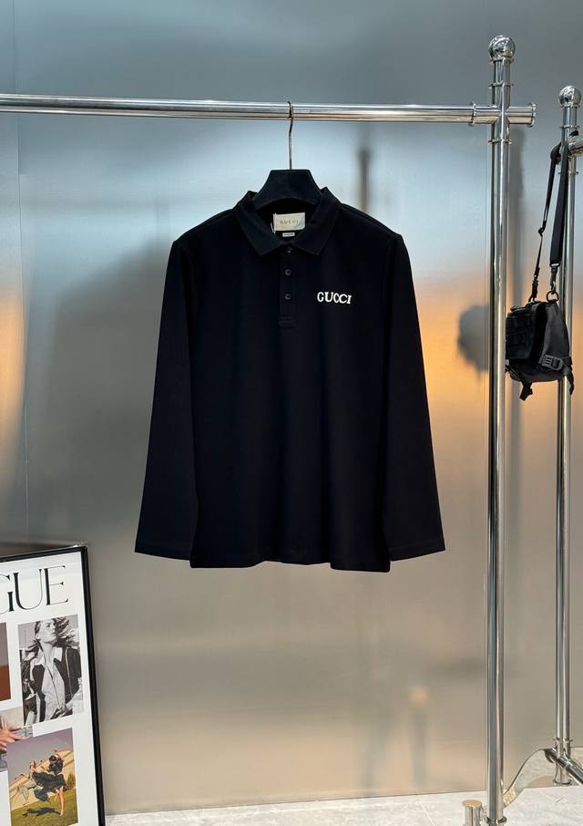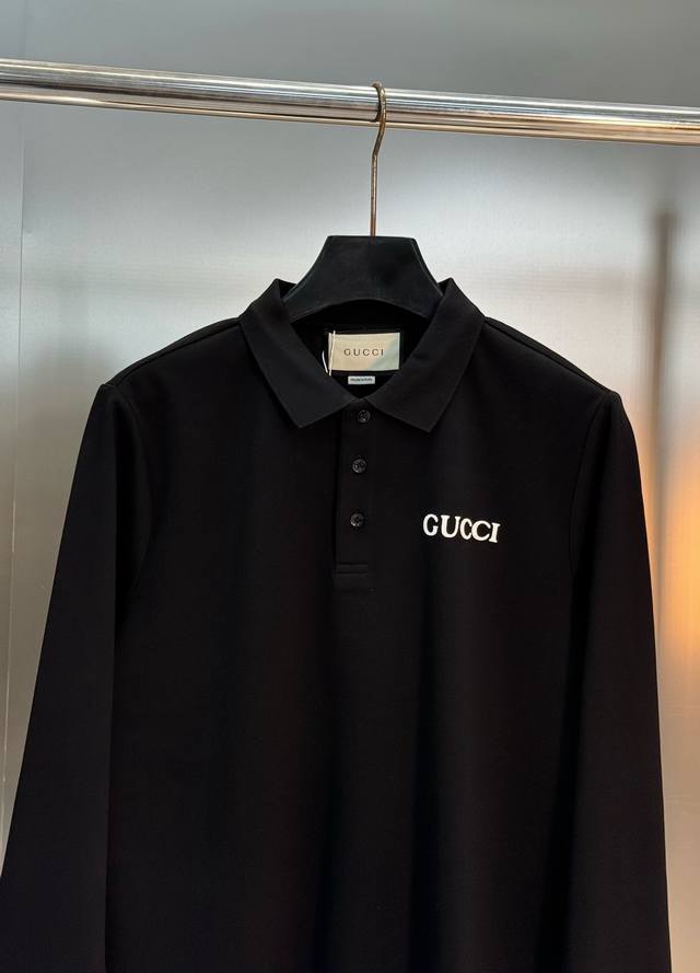 Gucci 2025 New Arrival Long-Sleeve Polo Shirt. A basic style recommended. Perfect for both business and casual wear. Features classic letter heat transfer on the chest. Three-dimensional and full design. High-weight ribbed fabric, identical to the original. 100% mercerized cotton double piqu
