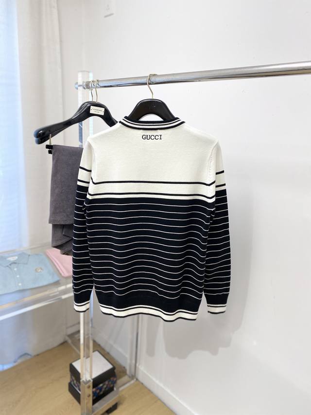 Gucci 2025 New Arrival Wool Sweater. This sweater boasts a delicate and soft feel, allowing direct contact with the skin. The warm yarn creates a refined texture, while top-notch craftsmanship adds a unique touch. The simple yet elegant design and exquisite three-dimensional tailoring give the sweater a youthful and energetic look. A recommended must-have for autumn and winter. Sizes M-3XL.