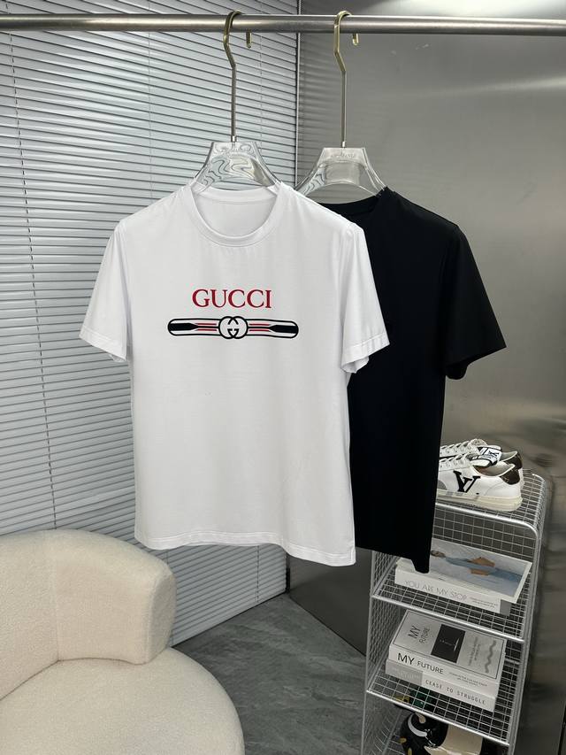 Gucci 2025 Spring/Summer High-Quality Mercerized Cotton Short-Sleeved T-Shirt M-6Xl, Wearable up to 230kg. Top-quality, original quality, meeting the latest craftsmanship requirements, with top-tier orders requiring top-tier stitching and workmanship. Perfect for pairing, top-tier customization, with top-notch detailing, quality, and tailoring. Custom-made from imported mercerized cotton fabric! Stylish and versatile with a sophisticated and versatile color palette. Please provide your height and weight
