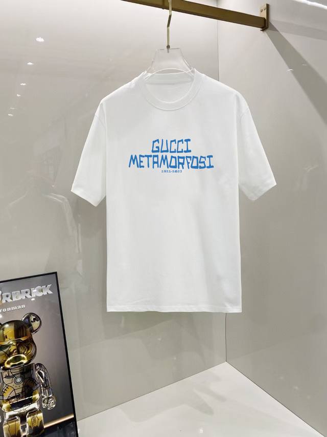 Gucci# 2025 Spring/Summer new release, the latest short-sleeved round neck T-shirt, high-end custom design, avant-garde fashion! Brand logo, heavy craftsmanship design, high-end custom 250g Xinjiang long-staple cotton fabric. Soft to the touch and comfortable to wear. Counter-level exquisite sewing and fine workmanship. The upper body effect is invincible and handsome! A must-have item for men! Color: Black. White!