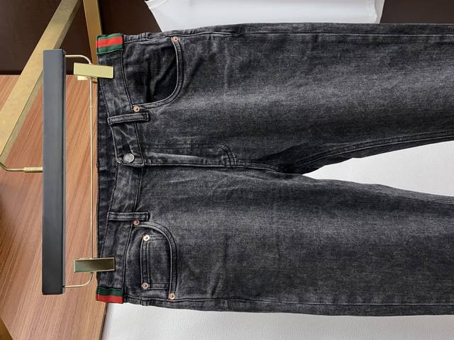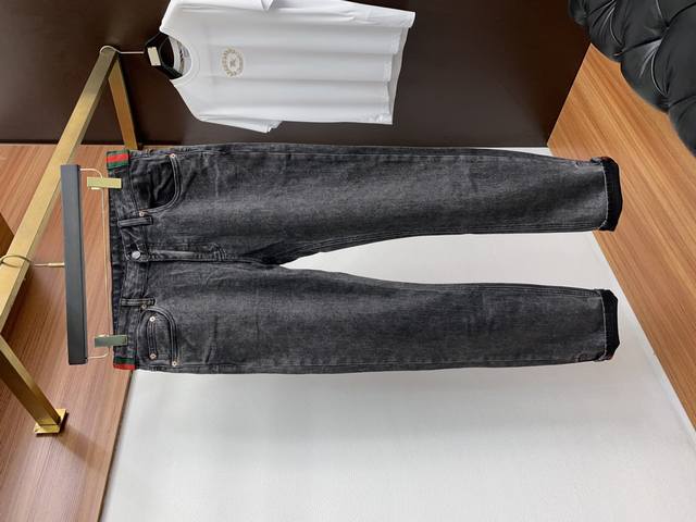 Gucci 2025Ss Autumn and Winter New Original Men's Slim-Fit Denim Casual Pants Pure-blooded G Counter 7000+