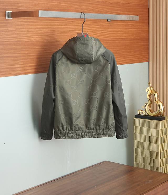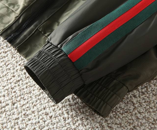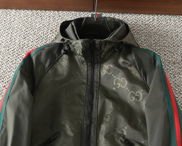 Gucci 2025Ss Early Fall New Release: This Gucci hooded jacket features double GG jacquard fabric with green and red webbing. This fall hit is made of grained fleece for a comfortable, slimming look. The relaxed yet casual feel, combined with the clean , simple color scheme, makes it a truly eye-catching and perfect everyday wear . We're releasing this sporty piece embellished with vibrant prints!