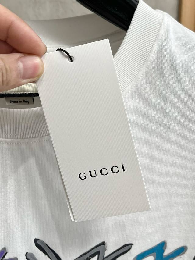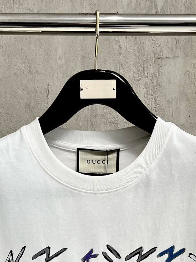 Gucci 2026 Spring/Summer New Arrival - Latest Boutique Short-Sleeve Crew Neck T-Shirt, High-End Custom Design, Avant-garde and Stylish! Hand-painted brand logo, meticulous craftsmanship, high-end custom pure cotton fabric. Soft to the touch, comfortable to wear. Exquisite stitching at boutique level. Fine workmanship. Incredibly stylish look! A must-have for fashionable men! Colors: Black, White Sizes: S, M, L, XL, XL