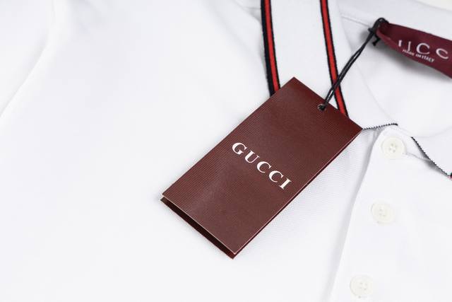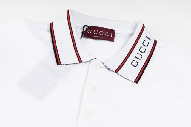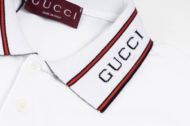 Gucci 25Ss new collar jacquard logo patch pocket polo 230g cotton pique Color: w