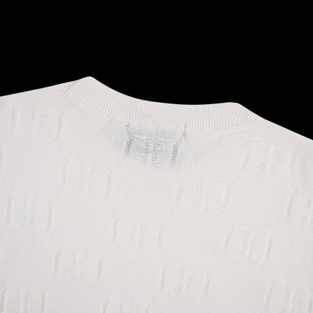 Gucci dark jacquard knit crew neck short sleeves. Focusing on details and striving for quality, unisex style. Color: Black, White. Sizes: Xs, S, M, L,