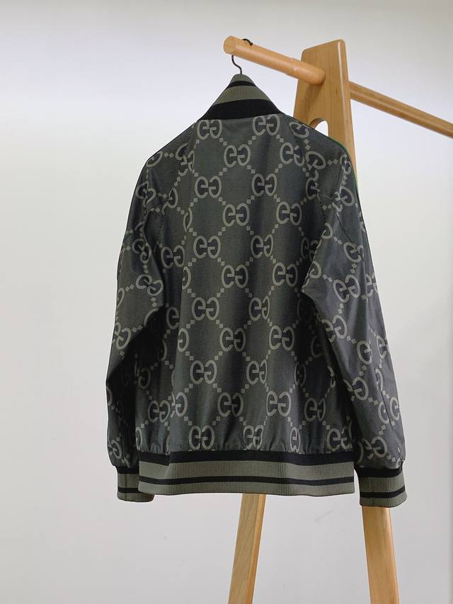 Casual Jacket, fresh from the runway, impeccable condition, and exceptionally striking design elevate your fashion sense with meticulously crafted stitching! A masterpiece from a renowned designer! Crafted from custom-dyed Gg jacquard cotton fabric, it features classic contrasting webbing on the sides, with all the lettering aligned on the panels. Lined with hemming for parking. Exquisite craftsmanship, this casual and sporty piece combines effortless style with impeccable, top-notch design. The fit is exceptionally flattering and the top is incredibly stylish. Recommended in two colors: