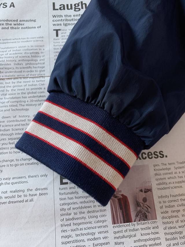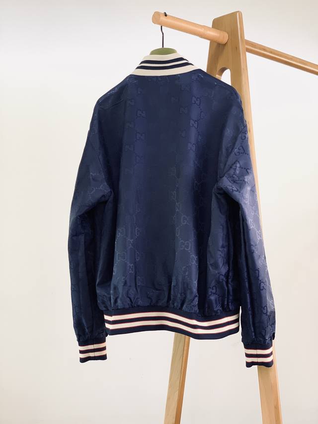 double-faced nylon canvas jacket. Crafted from lightweight materials and embellished with striped piping, this double-faced jacket embodies retro sporty style. This zip-up jacket is crafted from dark blue canvas on one side and Gg nylon canvas on the other in the same color. Interlocking Double G patches complete the design. Available for both men and women, it's a stylish and versatile piece. Sizes: M-3Xl