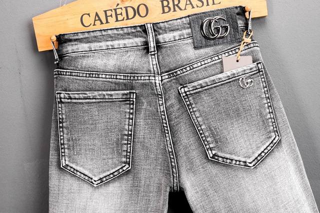 Gucci Gucci autumn new men's jeans cool boy trendy brand youth slim straight leg trousers slim fit version, classic brand pattern, high-end high-end washing process, better quality, more perfect upper body effect! Size: 29-38; no 35.