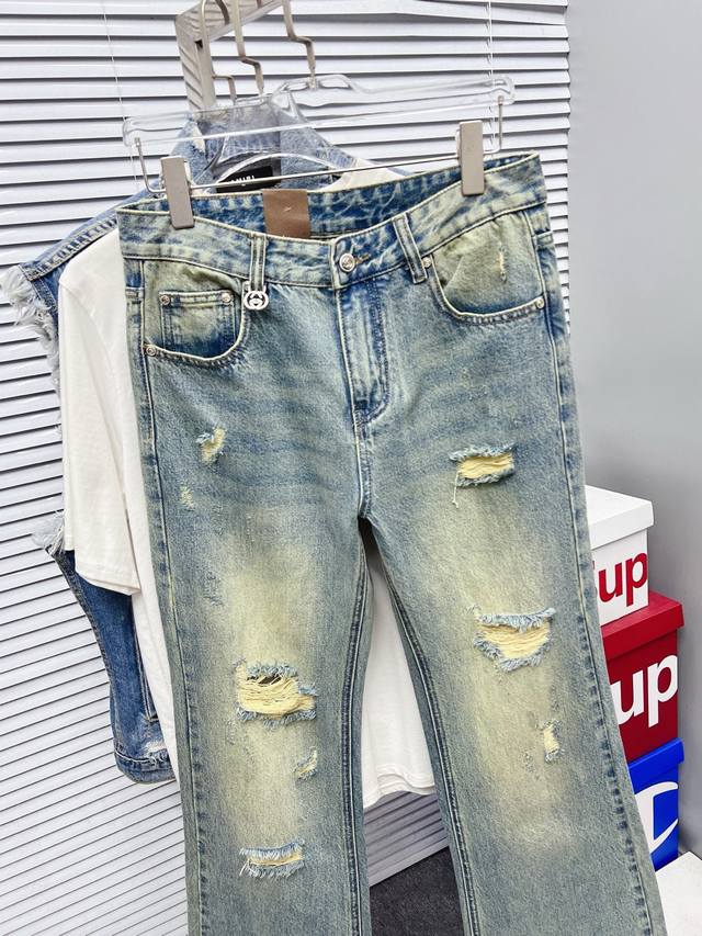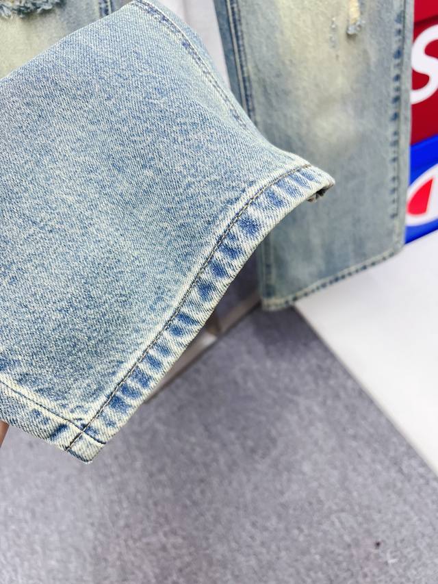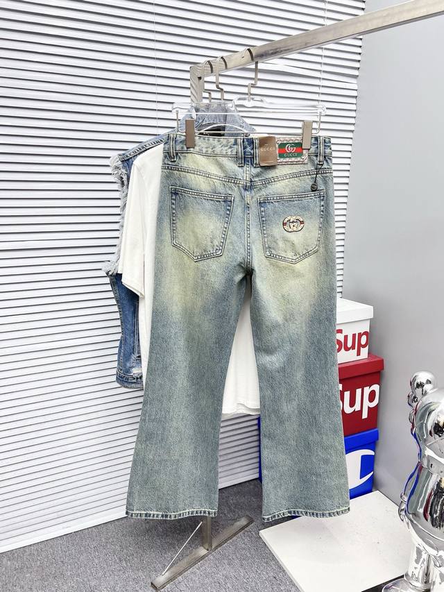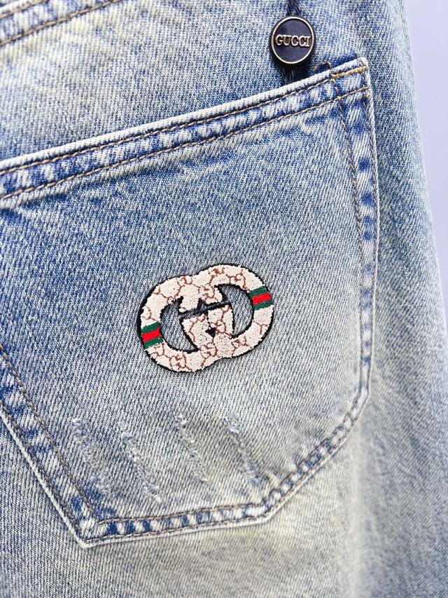 Gucci Men's Fashionable Wide-Leg Jeans, officially announced in catalogs and posters! Made with premium imported raw denim fabric, specially selected 13oz pure denim from Okayama, Japan, using a heavy-duty environmentally friendly plant enzyme washing process. The texture has a subtle retro feel, quite beautiful, perfectly matching autumn and winter color schemes. The fabric is soft and delicate after washing, yet retains a strong structure and slight elasticity, providing an excellent comfort experience. No finishing touches are used, preserving the purest denim color! Every detail is perfect, exquisite and meticulously crafted. The latest leather waistband highlights the brand's characteristics, and the hardware, leather label, and stitching all demonstrate meticulous craftsmanship! The perfect cut provides an excellent hip-lifting and slimming effect, easily matching any top in your wardrobe. Widely compatible, suitable for various everyday outfits, and stylish on the body, a must-have for quality enthusiasts and those who love 1V jeans! DDD Sizes: 28-38 (excluding 35 and 37)