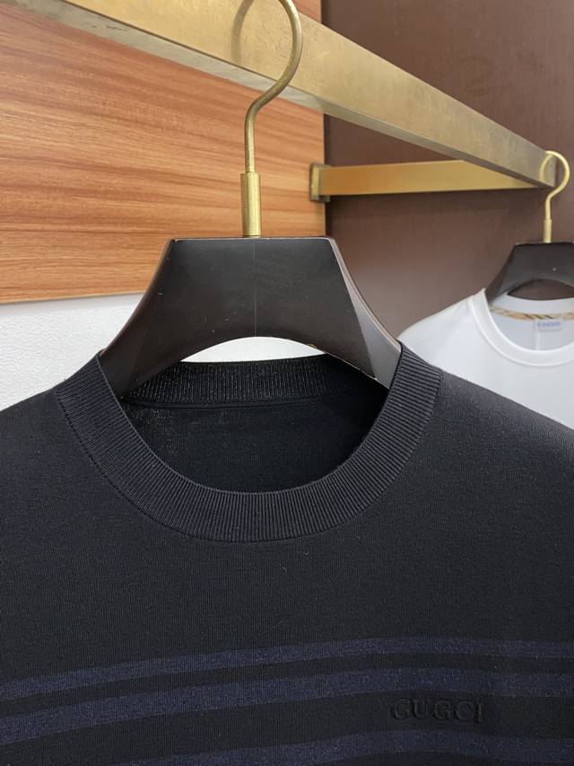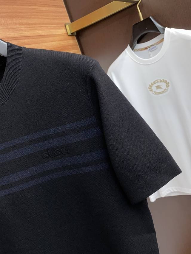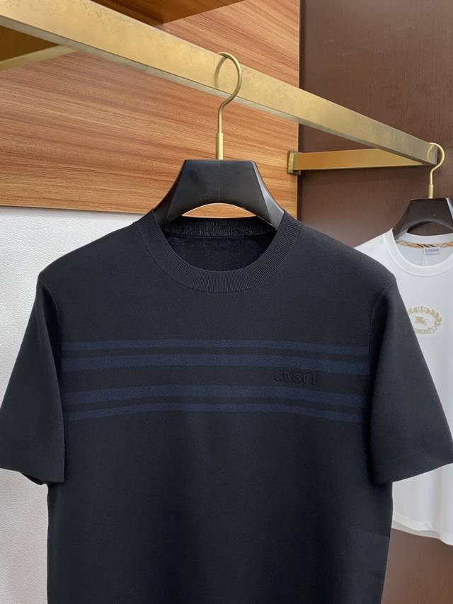 Gucci men's high-end, simple, round-neck, thickened knitted short-sleeved sweater. Sold through Hong Kong trading channels, this is authentic quality, a new Autumn/Winter 25 collection from the classic Ace series! This high-end, luxurious, and platinum-grade classic T-shirt perfectly blends Italian aesthetics with the Gucci family's DNA, embracing minimalism and a modern, urban aesthetic. The classic Gucci logo is beautifully crafted on the chest, creating a signature statement that strongly emphasizes the brand's identity and commitment to quality craftsmanship. Made with premium imported, anti-pilling fabric,