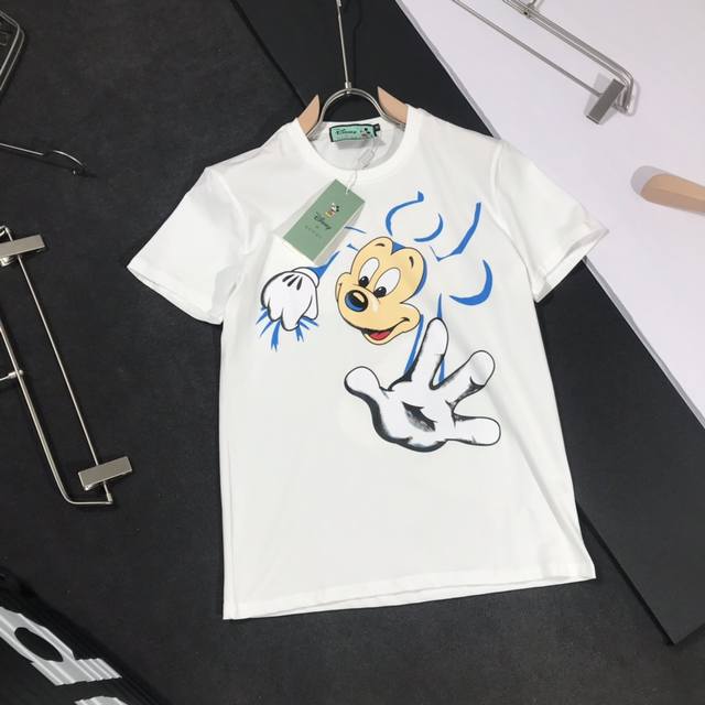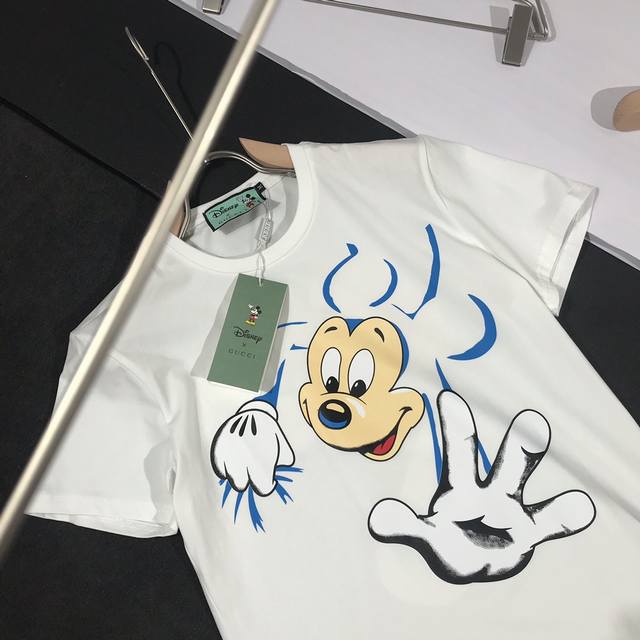 Gucci Mickey Mouse character high-definition print 20Ss G network synced unisex short-sleeved T-shirt, trading company in perfect condition order. Made of high-quality mercerized cotton, it's a must-have for summer. Sizes: M-2Xl