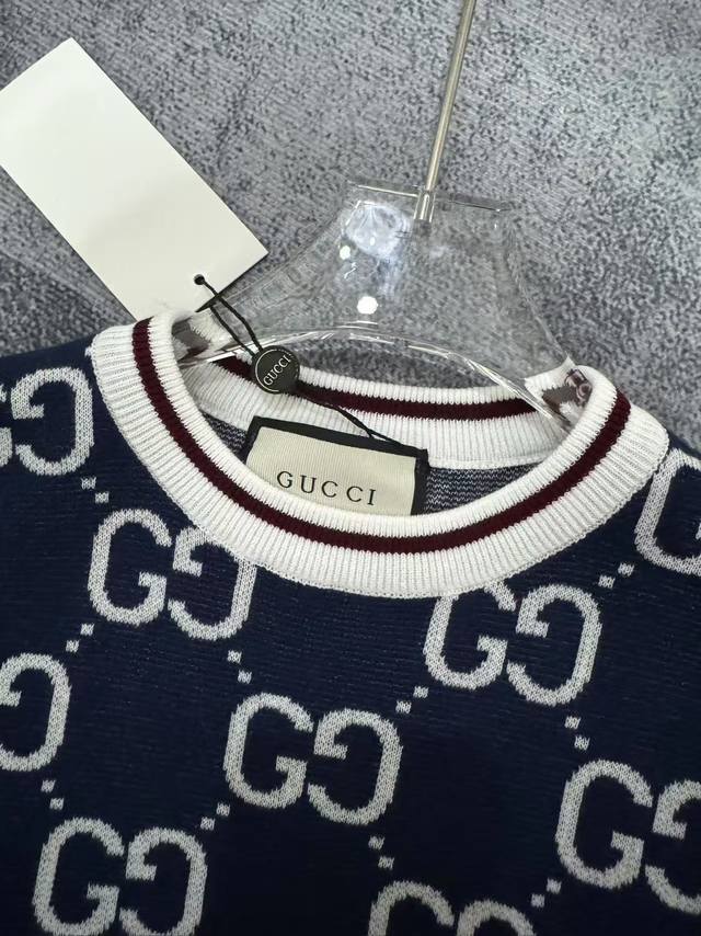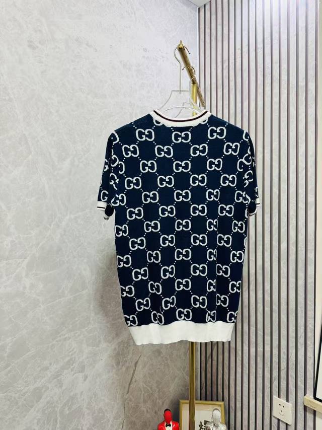 Gucci round neck jacquard knitted short-sleeved round neck sweater, focusing on details and pursuing quality, unisex style