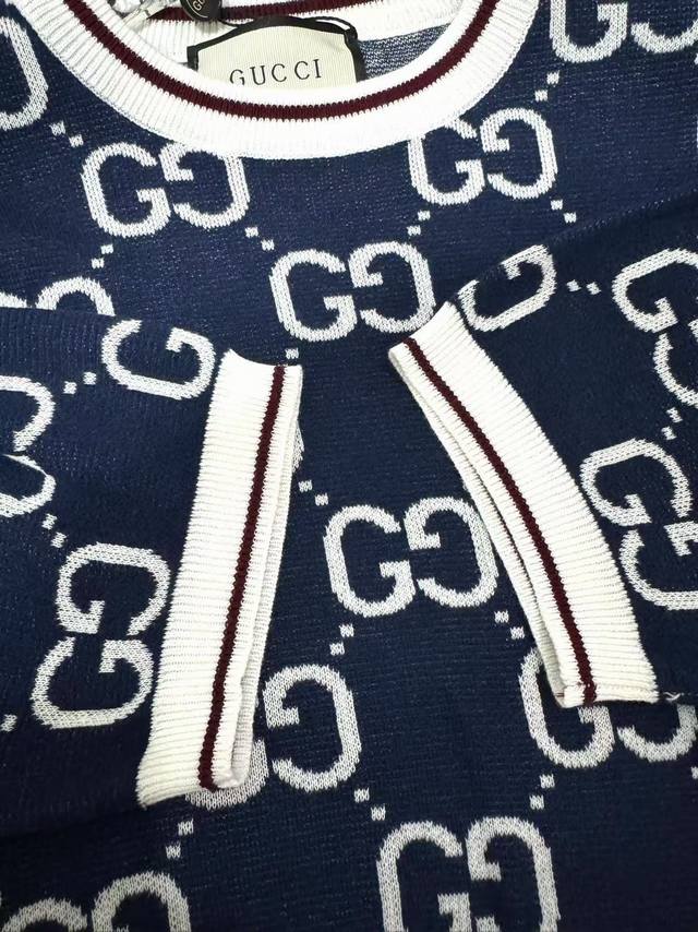 Gucci round neck jacquard knitted short-sleeved round neck sweater, focusing on