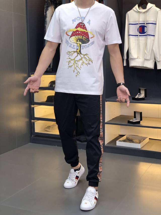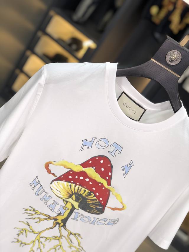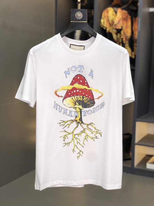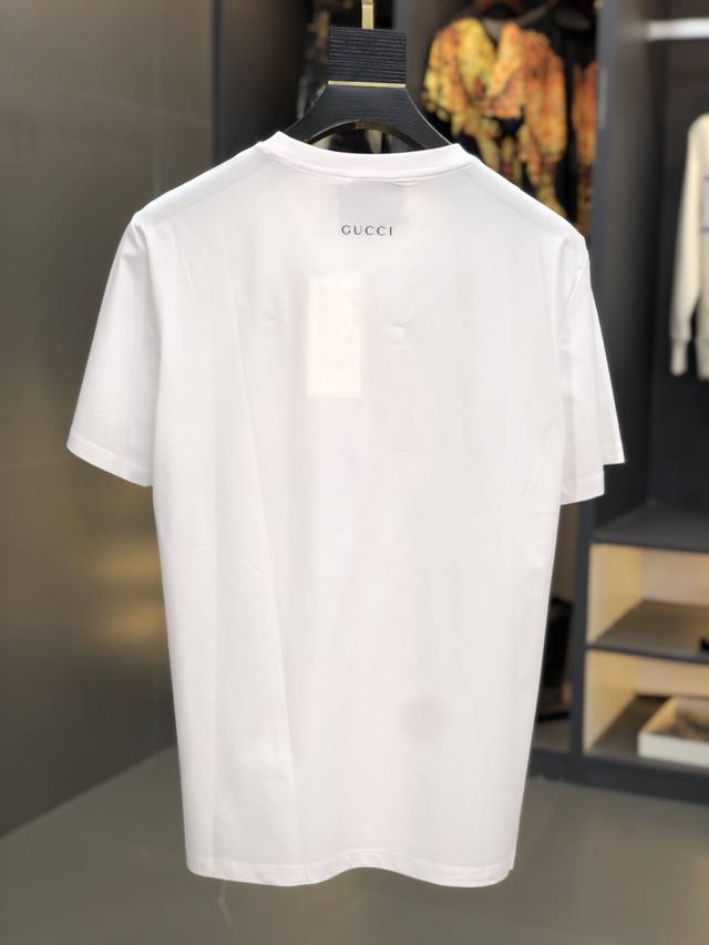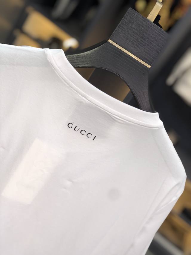 Gucci. This year's latest hot-selling short-sleeved T-shirt. Available in stores, this shirt features a simple, elegant yet stylish pattern and a classic luxury brand logo. Made from imported 120D double-ply, double-mercerized cotton, it's comfortable and smooth to the touch, breathable and cool, and definitely at the forefront of fashion! Sizes: M-Xxxl. M wears 175cm x 130cm x