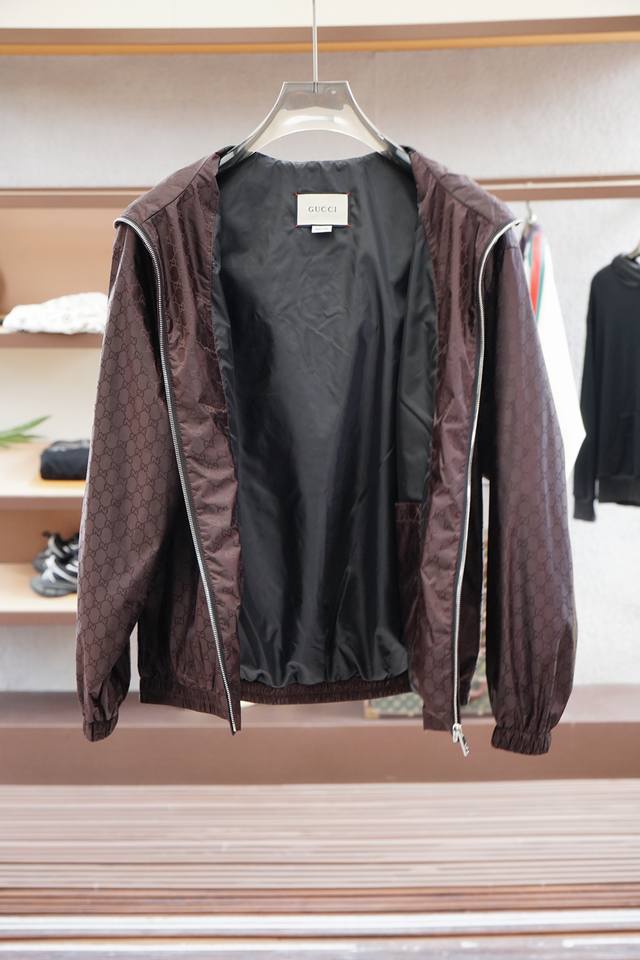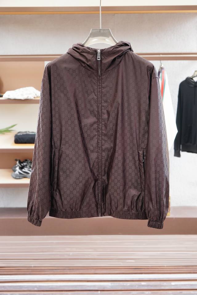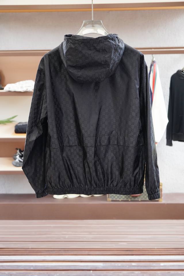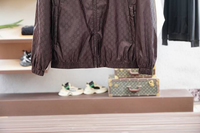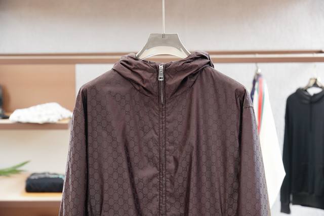 Dark Pattern Jacquard Hooded Jacket. Hardware and decorative accessories are provided by the customer. The fabric is made of double-layer polyester fiber composite fabric, which refers to a fabric made by a special process. This fabric combines the comfort and breathability of cotton. Only after compounding can the density and texture of the fabric be restored. The silky and stretchy jacquard process forms a pattern by interweaving warp and weft threads during the weaving process. The full-print jacquard means that the entire fabric is covered with detailed patterns and the Monogram print logo. This process makes the fabric visually richer and more three-dimensional, while also increasing the uniqueness and recognition of the product.