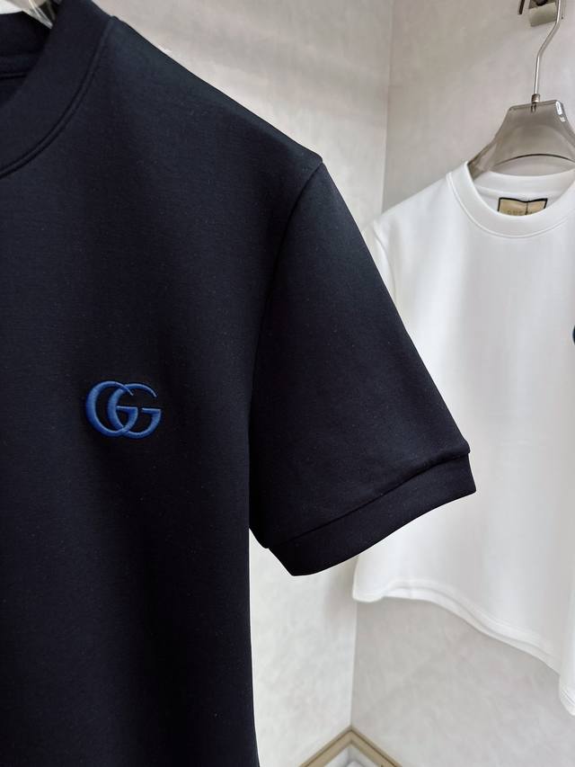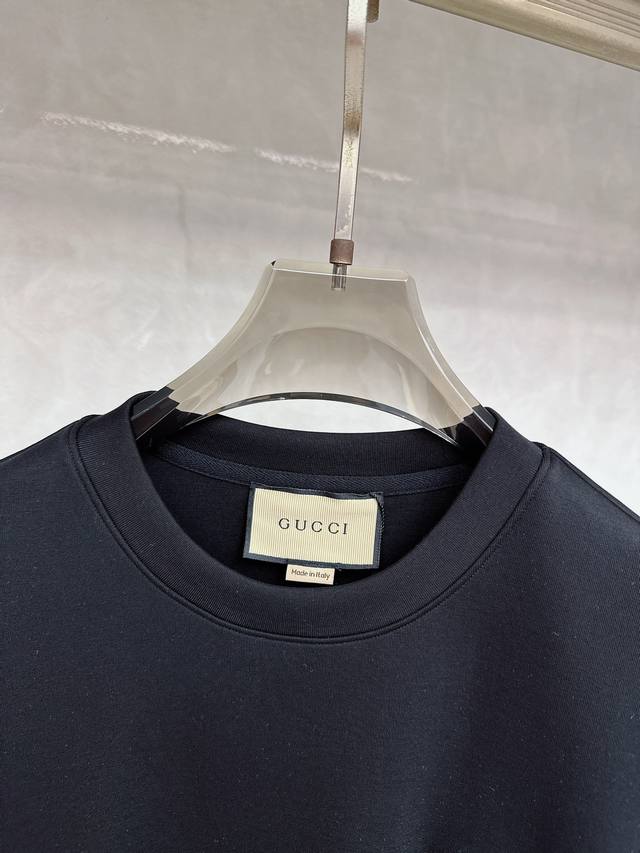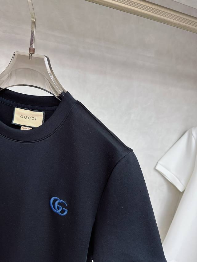 Gucci's 2025 Fall/Winter crewneck short-sleeved T-shirt base shirt features an elemental logo badge that accentuates its casual and fashionable appeal, maintaining its unique style. A perfect inner wear companion. Made from a high-count stretch knit made from 100% liquid ammonia air-layer fabric, this smooth, evenly knitted piece is light, refreshing, soft, comfortable, and highly breathable. Simple yet unique, this straight-cut design is perfect for a variety of trendy looks. Machine-embroidered, this piece highlights its delicate, rich texture, bringing a new experience to fashion, sports, and leisure. Available in sizes: M-3Xl