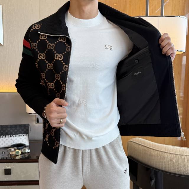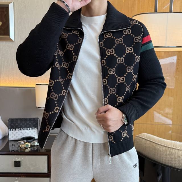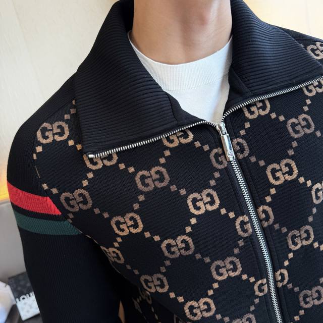 Gucci's 2025 Fall/Winter hit, a premium knitted jacket made from custom-made high-quality polyester! Featuring a top-tier logo design and all three labels! Original hardware, sleek lines, and exquisite craftsmanship create a stunning silhouette. The fabric is comfortable, windproof, and warm, making it a stylish and fashionable must-have for casual men. Sizes: M-3Xl, suitable for up to 190 pounds!
