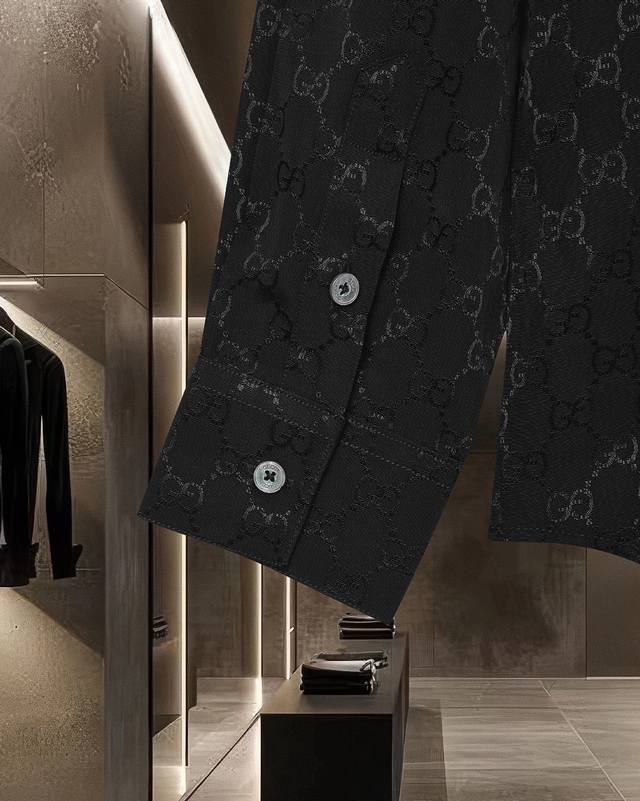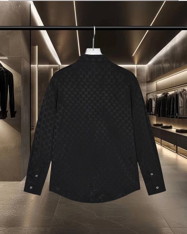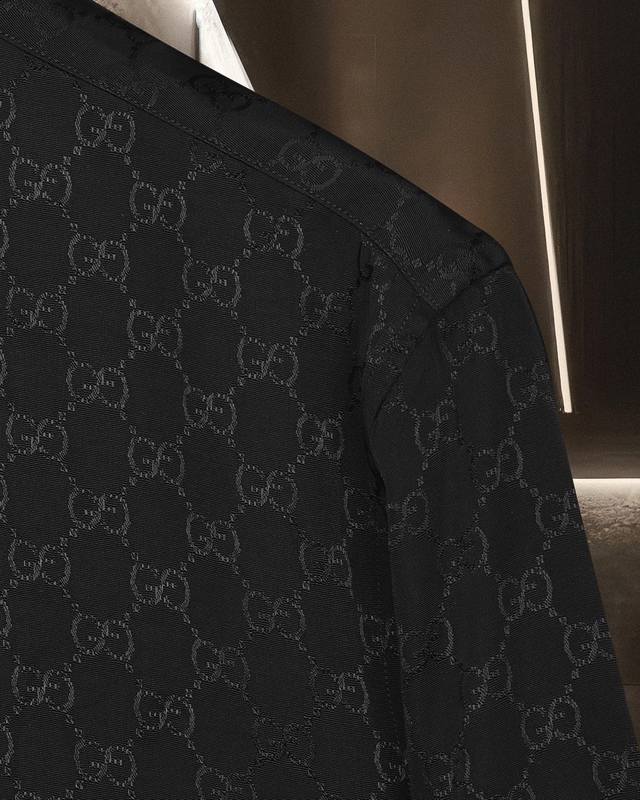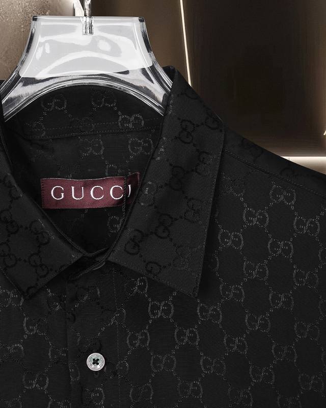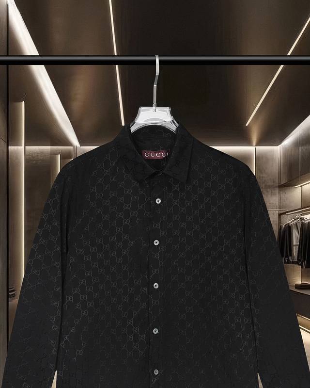 Gucci's hot-selling 25Fw classic double G barrage logo and lettering Tencel long-sleeved shirt. 2025Ss official website new long-sleeved shirt, exquisitely embroidered logo, high-end version, counter Tencel fabric is highly breathable and comfortable, precision craftsmanship, impeccable detailing, custom logo engraved buttons, three complete labels. Brand elements design concept, reflecting high quality. Delicate and soft feel! Presenting a casual cut, the upper body version is superb! Sizes: M-Xxl
