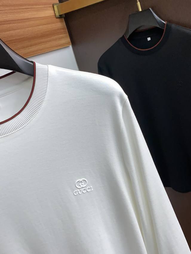Gucci's latest 2025 hot-selling early autumn long-sleeved bottoms are now shipping to Europe and the United States! Made of comfortable and soft double-faced cashmere and cotton fabric imported from Italy, paired with the latest designs, the brand embroidery design on the chest highlights the fashion, making it a great base layer or outer wear! Sizes: 48-56