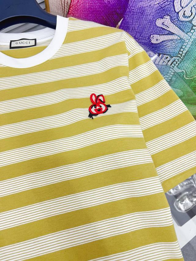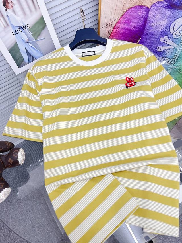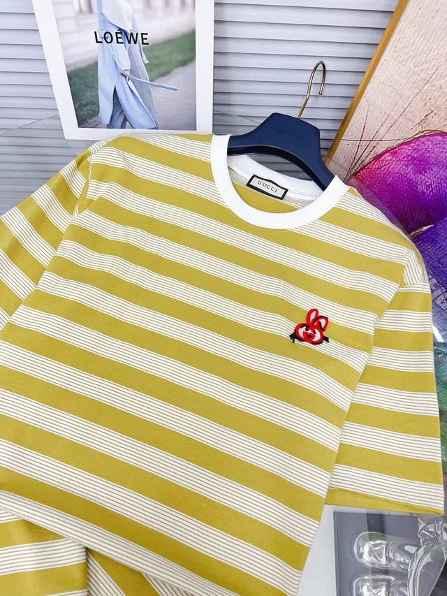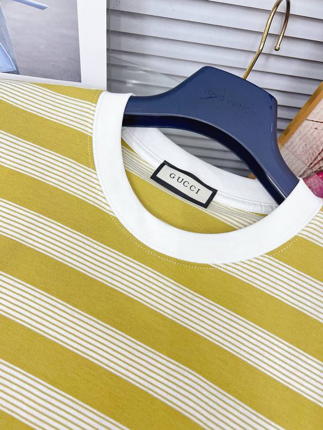 Gucci's new 2025 Gucci tricolore logo print short-sleeved T-shirt, made from custom combed double-yarn cotton. Soft to the touch, comfortable, and breathable! Stylish and trendy! Exquisite, boutique-quality stitching and meticulous workmanship ensure an incredibly stylish look! A must-have for stylish men!