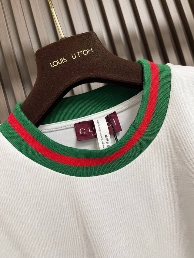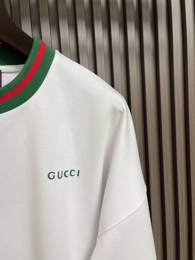 Gucci's new 2025Fw ribbon-embroidered sweatshirt, custom-made from soft, soft, comfortable, and next-to-skin fabric. The white base is pure and elegant. The iconic Gucci embroidery embellishes the chest, offering a subtle yet powerful touch . The meticulously outlined ribbon trim adds the finishing touch, creating a harmonious and perfect visual balance. The dropped shoulder design highlights a new level of fashion, creating a unique urban hipster image. Utilizing imported machine embroidery technology, advanced computer control systems, and sophisticated mechanical components, Gucci embroidery achieves high precision, with smooth, delicate lines. Sizes: Xs-L