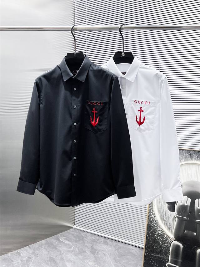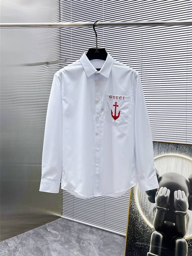 Gucci's new 2025Ss men's long-sleeved shirt, a high-end version! Custom-made fabrics are breathable and comfortable, with impeccable details and brand-inspired design concepts, reflecting high quality. It has a delicate and soft feel! The casual cut and upper body shape are fantastic! Sizes: M-Xxl (size runs large). M is suitable for 130-140 kg (L), 150-160 kg (Xl), 170-180 kg (Xxl), 190-200 kg (