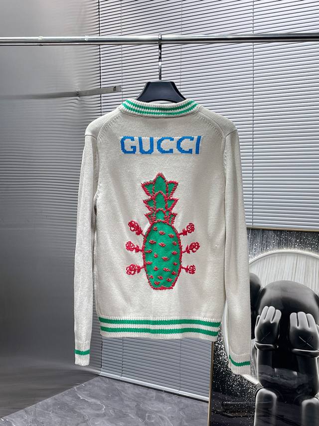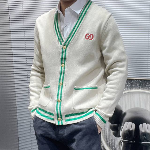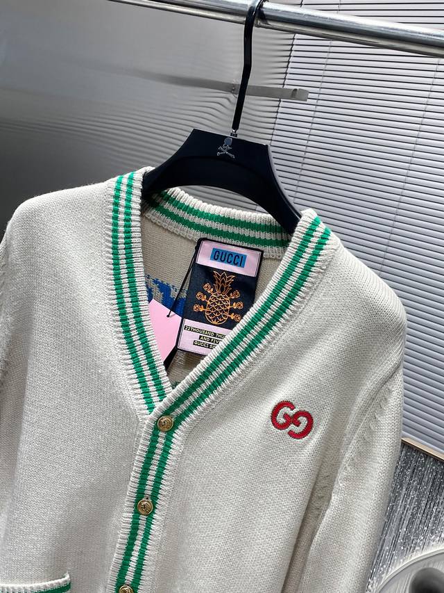 Gucci's premium 2025 SS wool blend long-sleeved cardigan sweater, a high-end base layer! Custom-made, breathable and comfortable fabric, impeccable details, and signature brand design embodies high quality. Soft and delicate to the touch! A casual cut with a stunning fit! Sizes: S-Xl