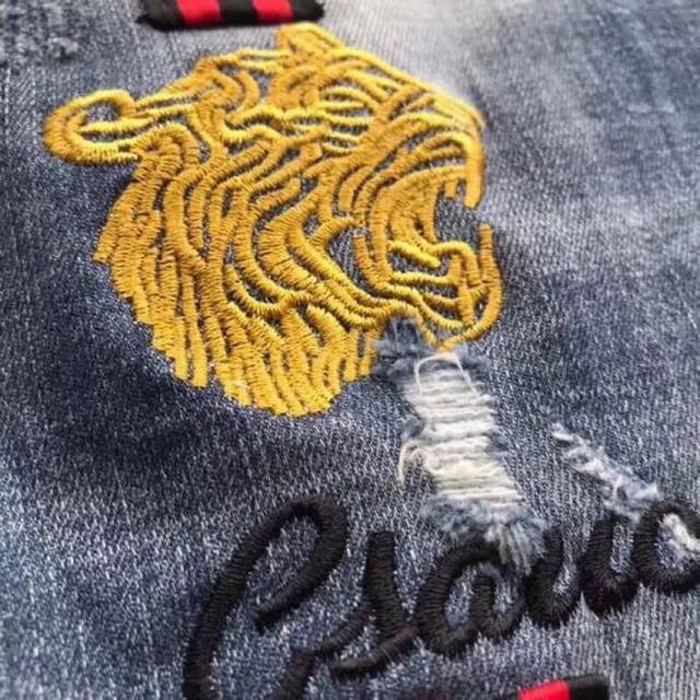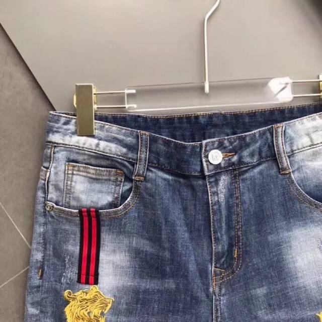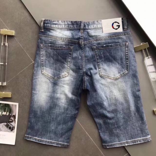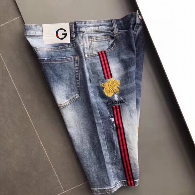 High-end Gucci custom-made slim-fit denim shorts, a recent runway style from the latest fashion week. A summer essential, expertly crafted with natural color and yeast wash technology. Made of premium heavyweight denim fabric, pure cotton, and featuring designer hardware. Three-dimensional tailoring and impeccable details. A pinnacle of quality! Sizes: 28-36