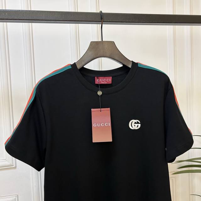 Hot-selling complete set for sale. Not sold individually. Gucci 2025 casual men's short-sleeved comfortable suit, high-end custom M-3XL. Black/White L, shoulder width 47cm, chest 104cm, shirt length 70cm, waist 72cm, trouser length 60cm.