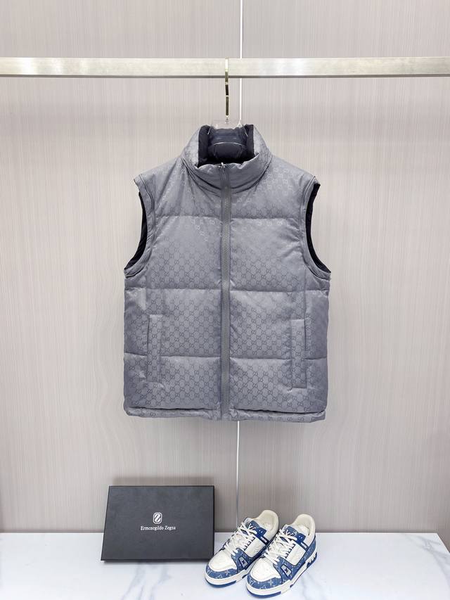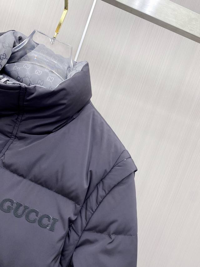 Hot-selling down jacket, reversible with detachable sleeves. Gucci 2025 new down jacket, runway new arrival. Detachable sleeves, four ways to wear. Perfect condition, made with high-tech waterproof fabric, filled with 95% white duck down for comfort and warmth. Rich and attractive color, a very outstanding design that easily elevates your style. Exquisite and meticulous workmanship, with neat and fine stitching! A masterpiece by a top designer! Not bulky and super stylish! Available in sizes 48-56.