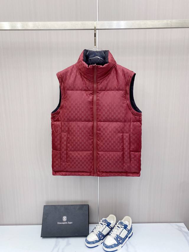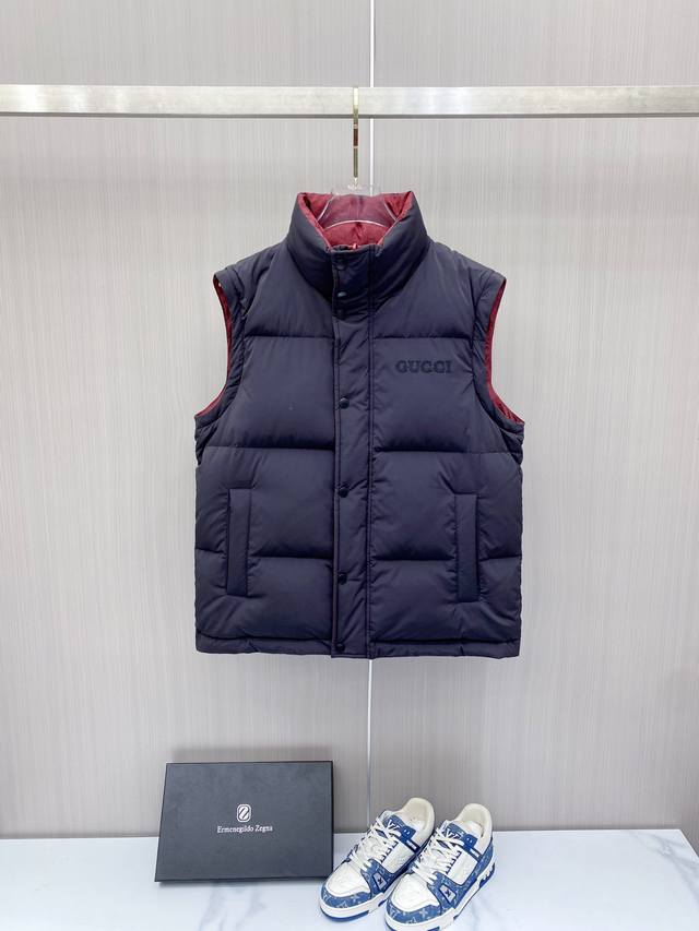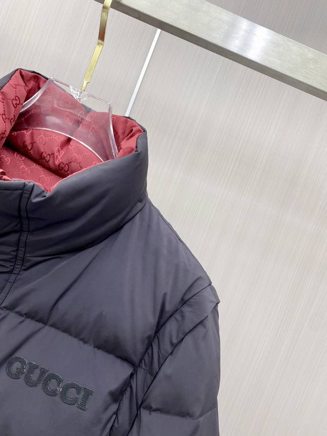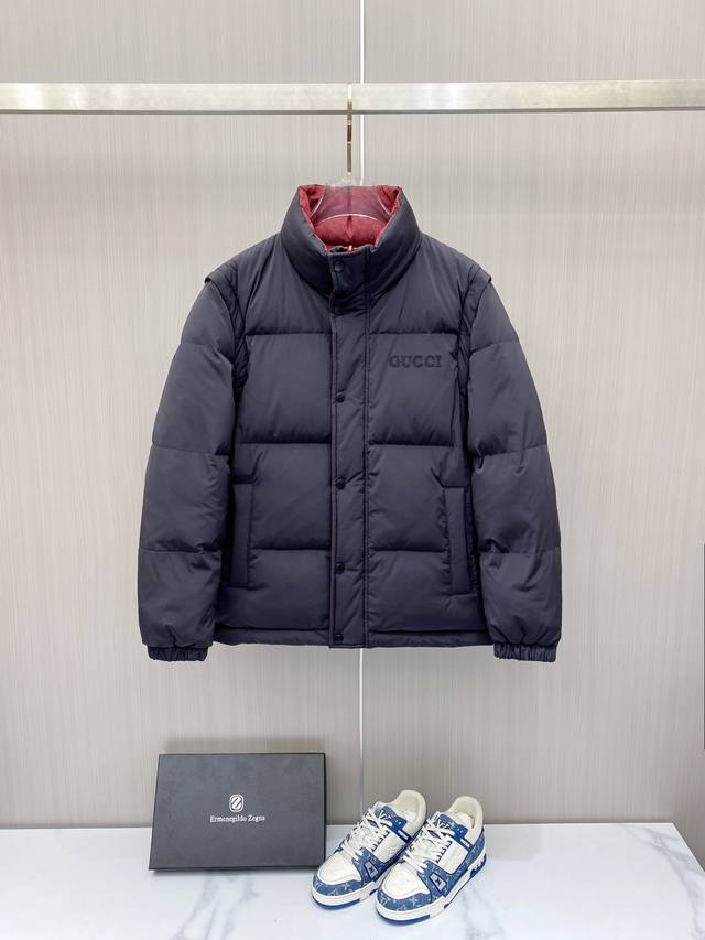 Hot-selling down jacket, reversible with detachable sleeves. Gucci 2025 new down jacket, runway new arrival. Detachable sleeves, four ways to wear. Perfect condition, made with high-tech waterproof fabric, filled with 95% white duck down for comfort and warmth. Rich and attractive color, a very outstanding design that easily elevates your style. Exquisite and meticulous workmanship, with neat and fine stitching! A masterpiece by a top designer! Not bulky, super stylish! Available in sizes 48-56.