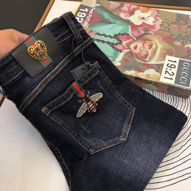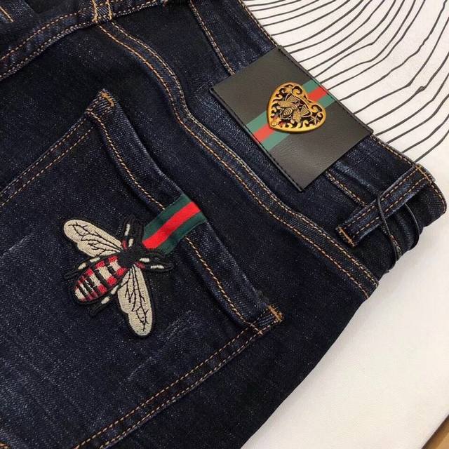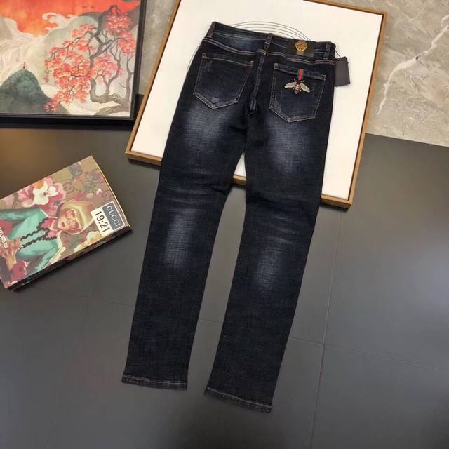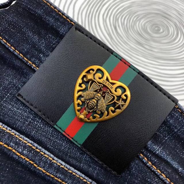 Jeans: Gucci's premium imported, original jeans, crafted with original hardware and accessories. Custom-made denim fabrics, heavily embroidered, and perfectly matched to the original. Try them on at the counter before buying; good quality is never a problem. Sizes: 28-38