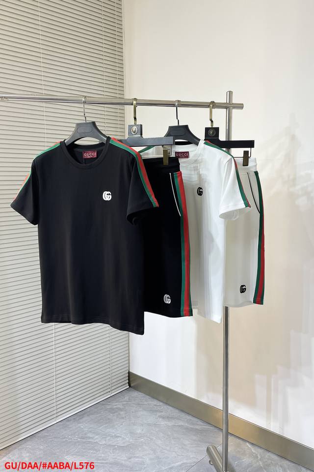 L576 Gucci High-End Custom 2025 Spring/Summer New Arrival: Latest Short-Sleeve Casual High-End Custom Design! Avant-garde and fashionable! Features a brand logo, high-quality custom-made mercerized cloud cotton fabric, soft to the touch, comfortable to wear, exquisite stitching, and fine workmanship. Incredibly stylish! A must-have for fashionable men! Sizes: M-3XL. All tags included, sold unopened.