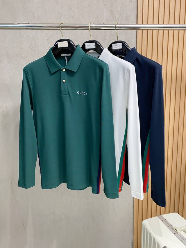 New arrival for the spring, exclusively from Gucci. A new, original men's polo long-sleeved polo shirt, high-end customization, high-end version, fashionable and versatile. Made of imported pure cotton fabric, featuring a logo on the chest. Ultra-soft and delicate, it's skin-friendly and comfortable to wear. Made by a high-end boutique OEM factory. Excellent workmanship. A must-have item for men. Available in sizes M-4Xl and multiple colors.