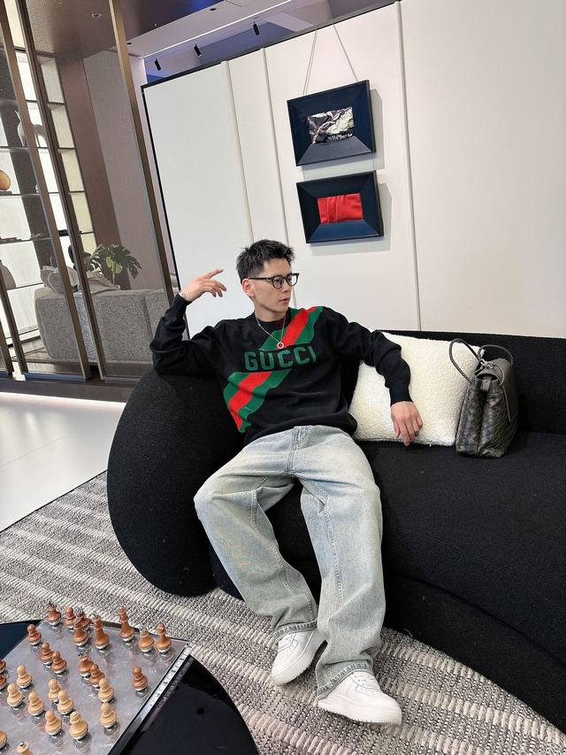 New arrival! Gucci sweater, 2025 Fall/Winter latest collection, 1:1 top-quality replica from the official store, in perfect condition! Thickened version, a must-have item for trendsetters! Those in the know, grab it now! Fabric: 10% cashmere, 60% wool, 30% spandex. Sizes M-3XL, multiple colors available.