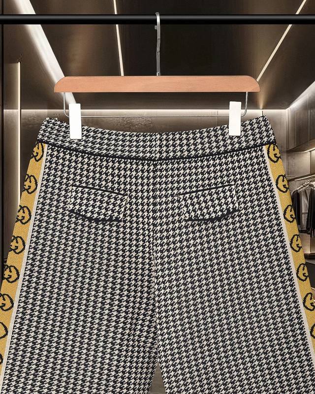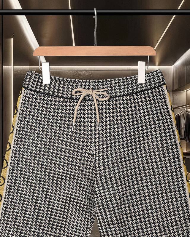 Next-day shipping. Gucci G-brand color-blocked side webbing knitted casual sports shorts. 2025. Made from the official original fabric. Custom mesh sweater knit fabric for a high-end look. Custom-made fabric for breathability and comfort. Exquisitely crafted with impeccable detailing, featuring custom logo-engraved buttons and all three labels. Brand-inspired design reflects high quality. Soft and smooth to the touch! Casual cut with a stunning upper shape. Color: Black. Sizes: M-2Xl.
