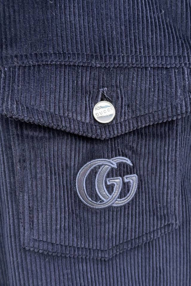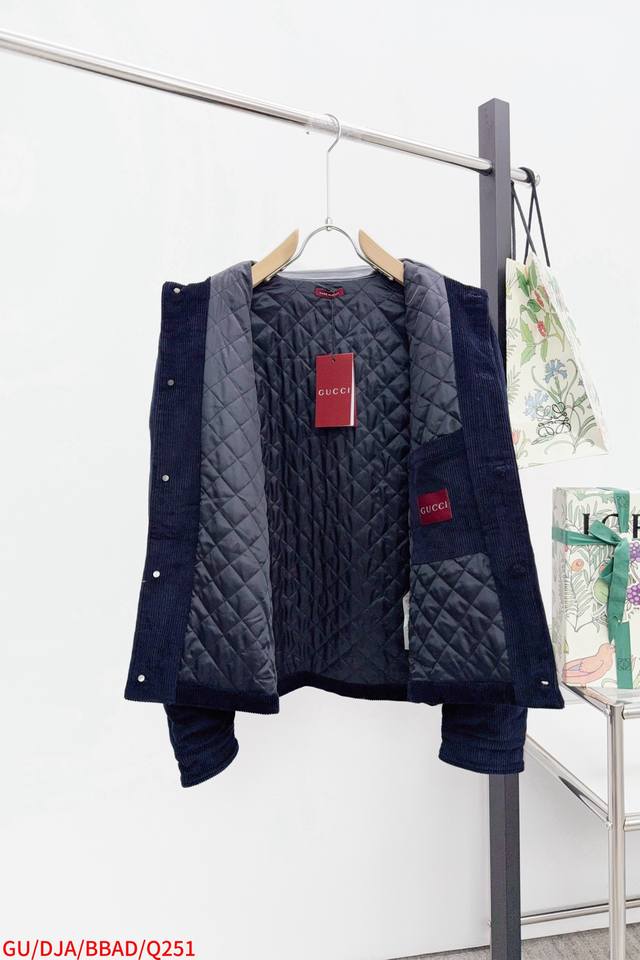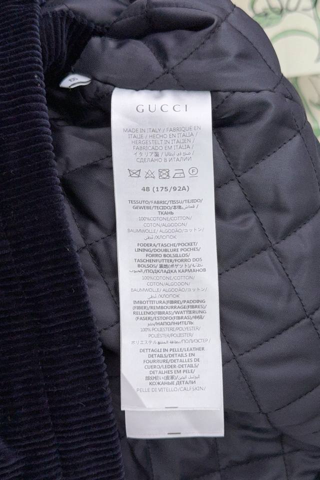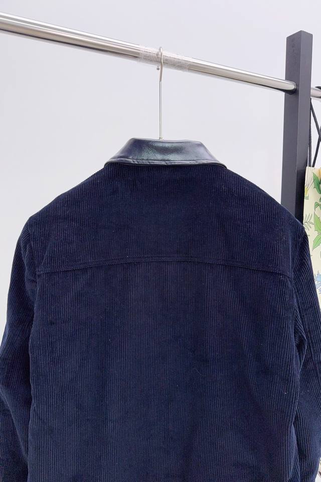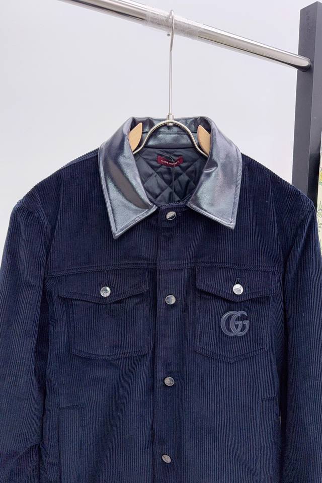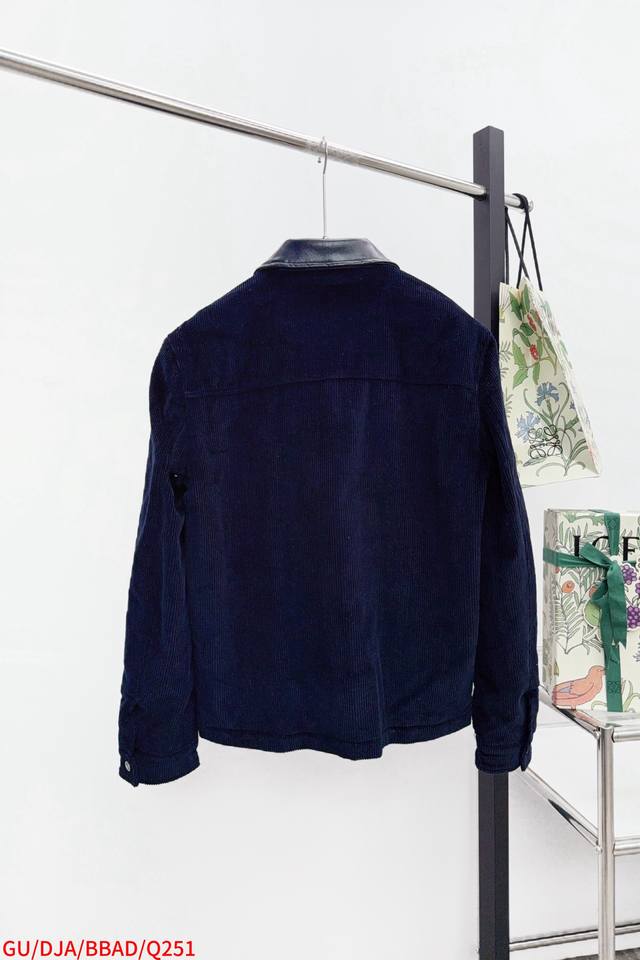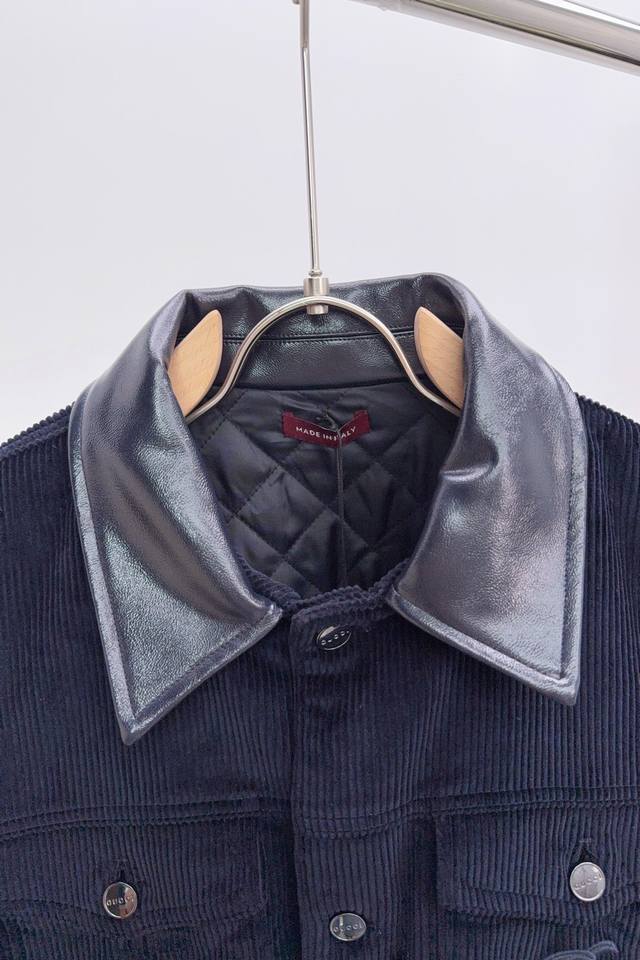 Gucci's new autumn/winter 25 corduroy and leather lapel embroidered jacket.