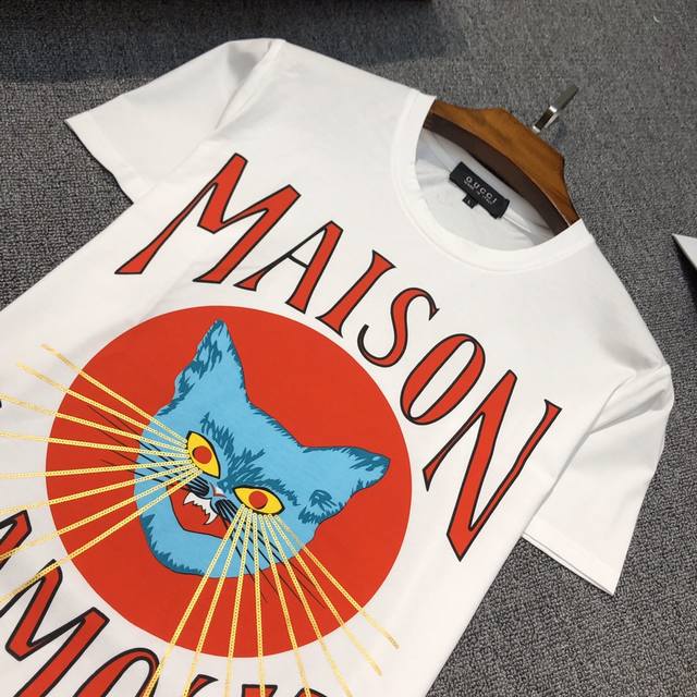 Special offer Gu*Cci# Spring/Summer new unisex short-sleeved T-shirts. Made of mercerized cotton, featuring a striking kitten eye embroidery. Original factory sourced from the original manufacturer! Sizes M-4Xl