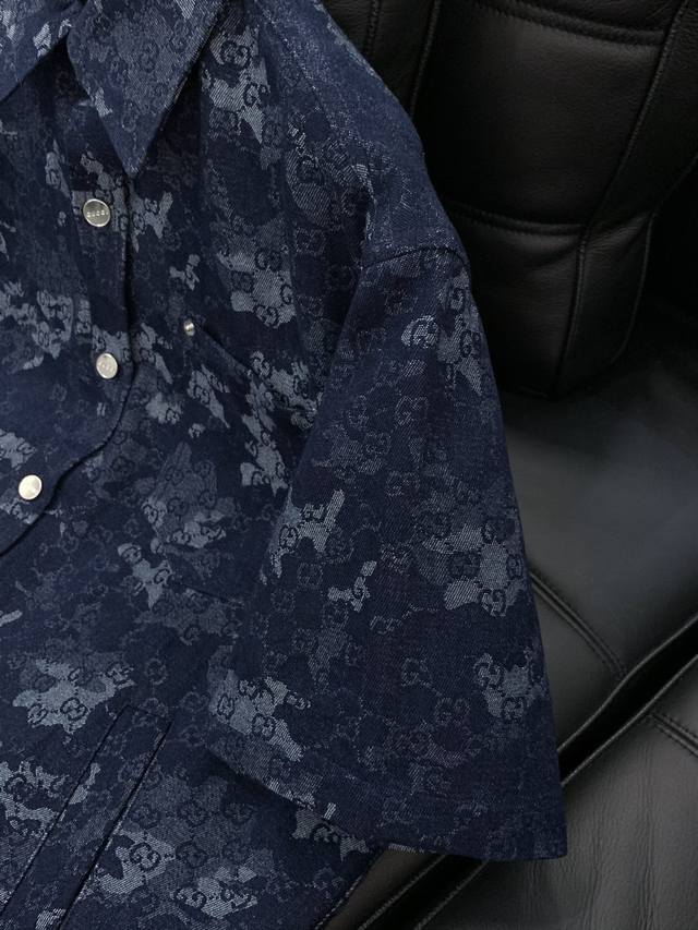 Top and shorts, Gucci, 2025 summer newest styles, available in store now, original and high-quality, stylish casual denim set, very distinctive! Eye-catching and eye-catching, made with imported original fabrics, top-grade jacquard lettering and logo decoration , and original hardware accessories. Simple yet stylish, classic and elegant, comfortable and breathable, with a stylish and cool look. Sizes: S-Xl