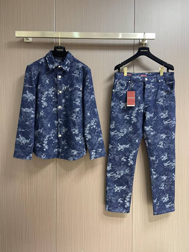 Top Jeans Gucci 2025Ss new embroidered long-sleeved shirt, jacket and jeans set