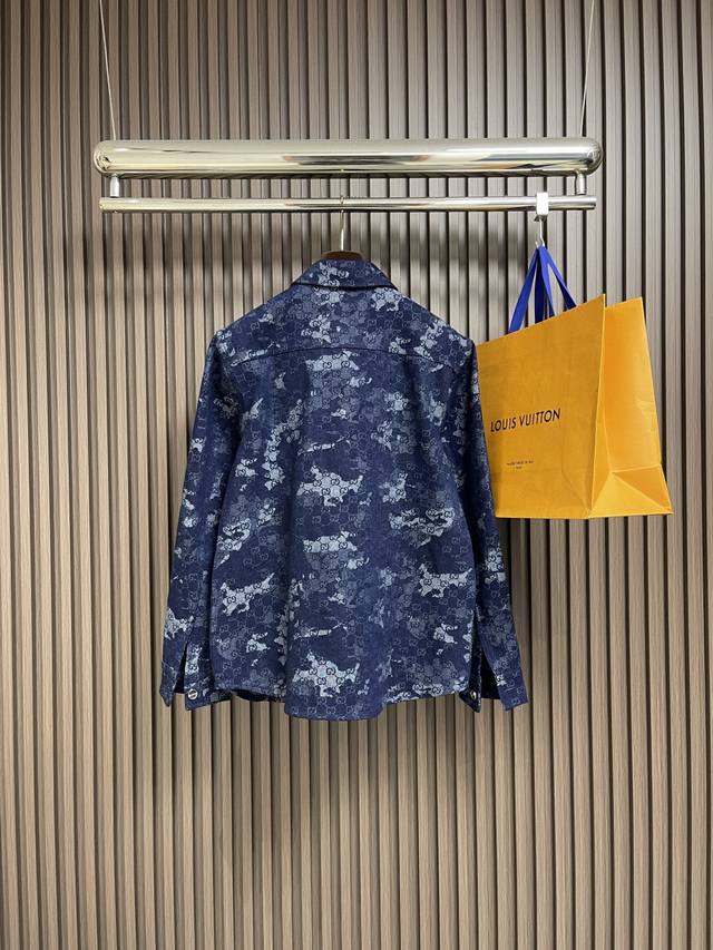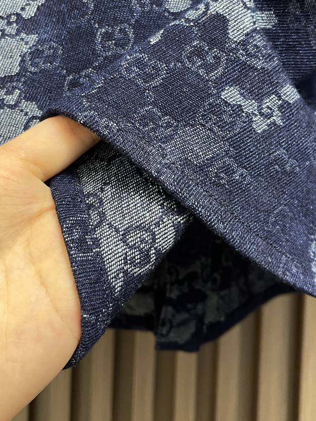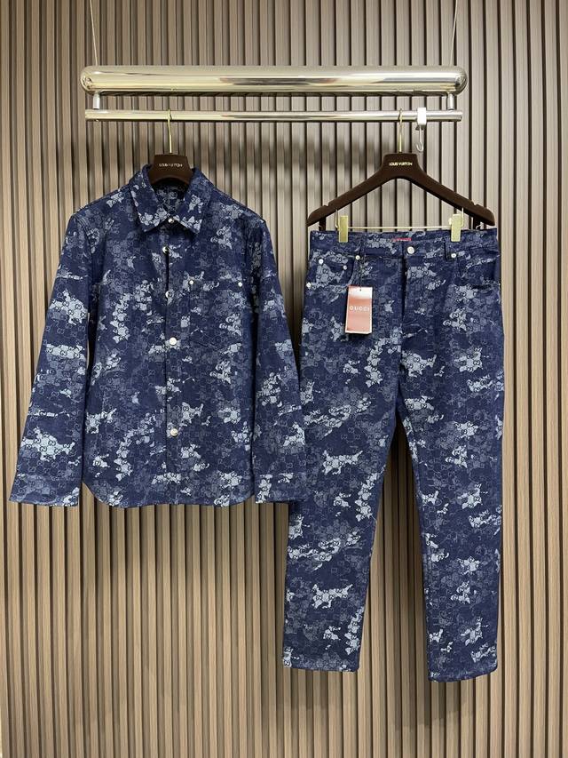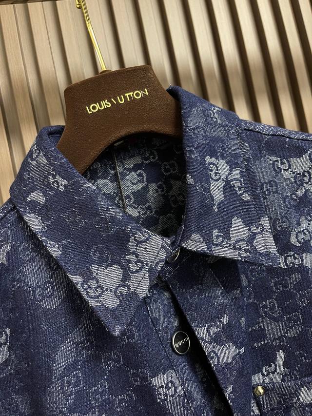 Gucci 2025Ss new embroidered long-sleeved shirt, jacket and jeans set, crafted from custom denim fabric, boasting superior texture, comfort, softness, and breathability. The chest is embellished with iconic embroidery, the lining is overlocked, and the buttons are custom-lettered. Sizes: S-Xl
