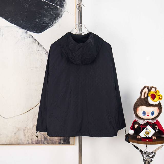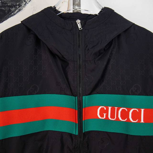 Gucci 2025 new ribbon embroidered logo couple hooded jacket