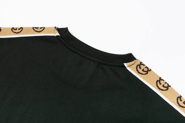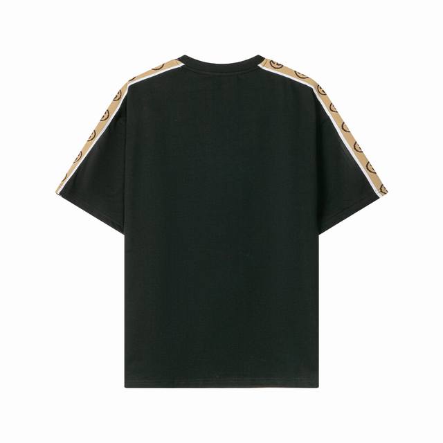 7211, high-end custom-made, exclusive top-quality version of the Gucc*Logo webbing shoulder splicing round neck short-sleeved T-shirt. Made with exclusive custom-made 290g original 1:1 double-ply double-yarn pure cotton fabric, custom-woven and dyed in the same batch with no color difference ribbing, custom-made 1:1 accessories, complete with three labels, oversized loose fit, exquisite and perfect workmanship, soft and comfortable fabric that does not deform, unisex style, different from market versions, specializing in high-end top-quality goods, welcome to compare quality. Sizes: Xs, S, M, L, Ddd; Colors: Black, Apricot, Ddd