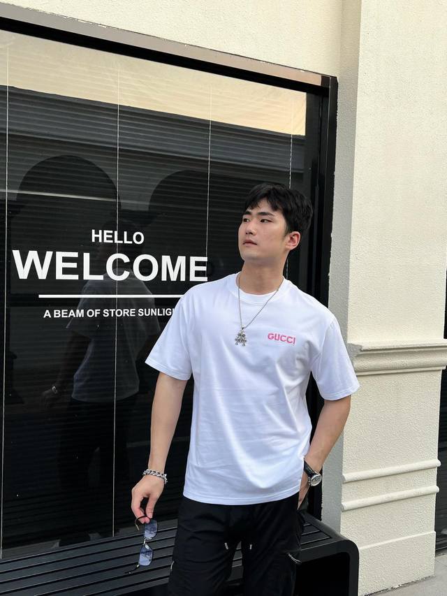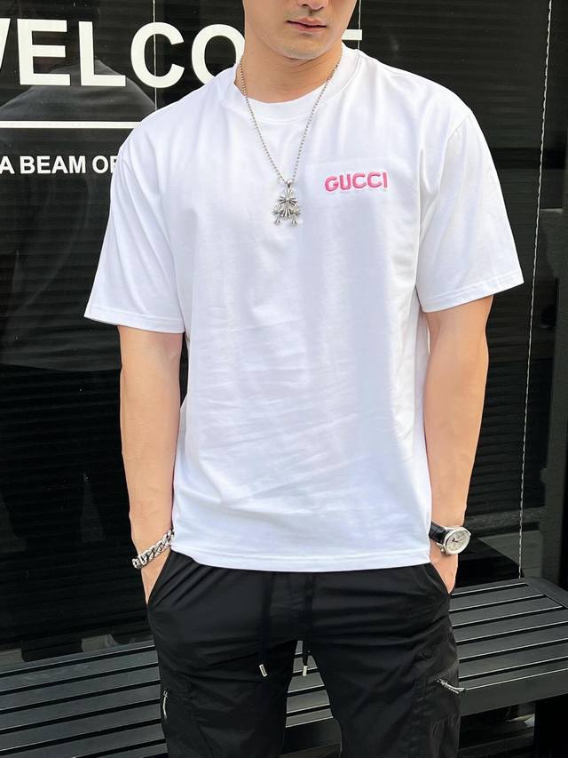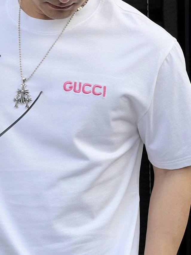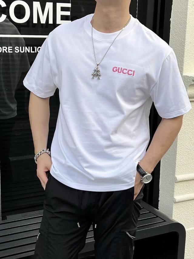 Featured: Gucci exclusive autumn new arrival, Gucci fashionable casual crew neck short-sleeved T-shirt, high-density 320g pure cotton fabric, high-grade dense needle embroidery, high-end European original single T-shirt, trendy and fashionable casual short sleeve with high breathability and comfort, impeccable details, brand elements and design concept, reflecting high quality. Presenting a casual cut, the fit is superb! Sizes: M-3XL DDD H2025 New Arrival DDD
