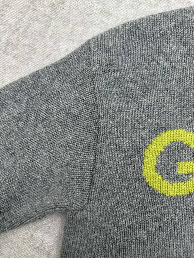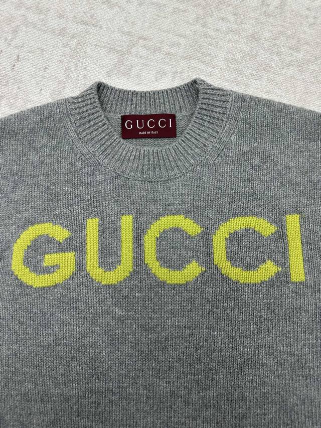 G Brand 25Ss New Women's Gucci Intarsia Wool Top. The Gucci logo adds a touch of elegance to this collection with its ingenious combination of colors and fabrics, including linen blends and wool. This round-neck top is crafted from grey wool and exquisitely embellished with an intarsia "Gucci" logo, enhancing the overall design's charm. Sizes: S, M, L, XL. Note: Women's sizes are only exchangeable.