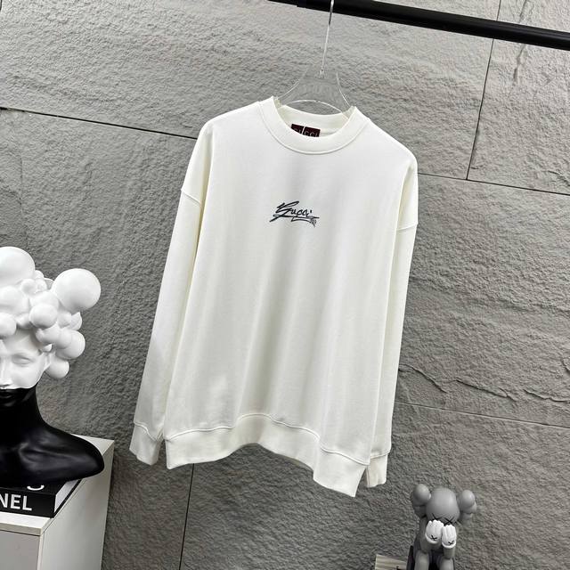 Gu* Gucci*2025 Early Autumn/Winter New Style Double G Chest Gucci Simple Black and White Embroidery Long Sleeve Crew Neck Sweatshirt Custom Terry Fabric Unisex