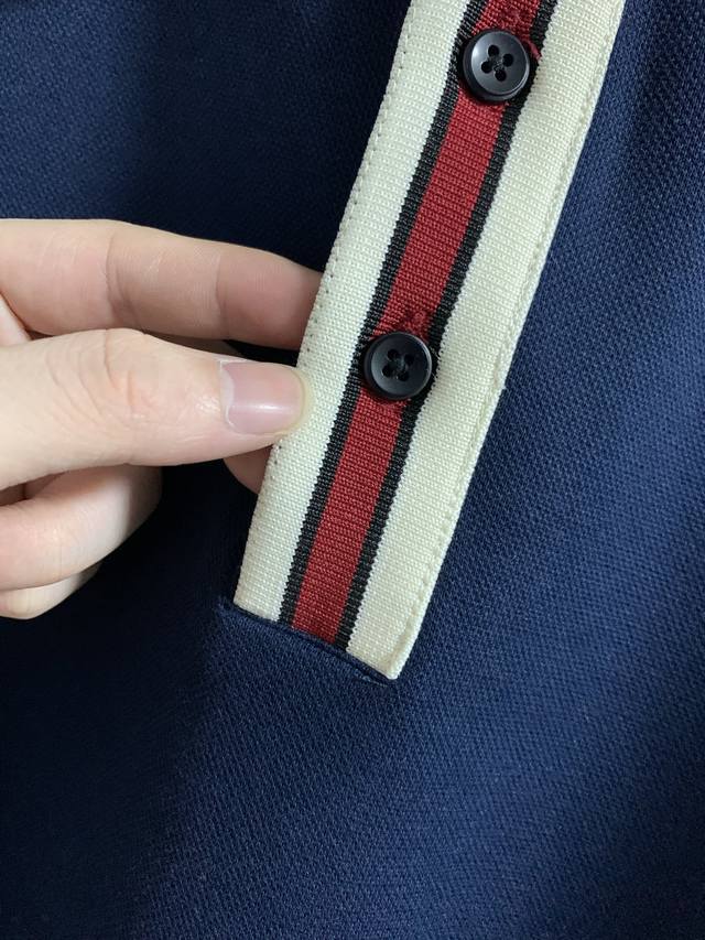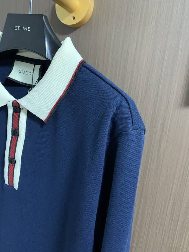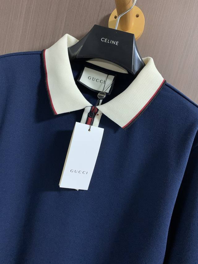 Gucc Business casual commuter style, channel premium quality, the aesthetic British tailoring art fully shows the charm of men. DDD 25 Autumn/Winter exclusive logo polo shirt long sleeve T-shirt The classic lapel tailoring has never stopped. Neither monotonous nor complicated, the masterpiece of craftsmanship shows the British style. DDD Customer-supplied hexagonal Zhu Di fabric, made by micro knitting technology, comfortable and skin-friendly, the details and touch are even more wonderful. Distinguish from inferior polo shirts with serious dyeing. DDD The overall stitching is neat and symmetrical from the inside out. The process of quilting structure is seamless. The iconic striped knit collar design is neat and meticulous and does not deform. The exquisite craftsmanship is impeccable. DDD Sizes M L XL 2XL 3XL DDD