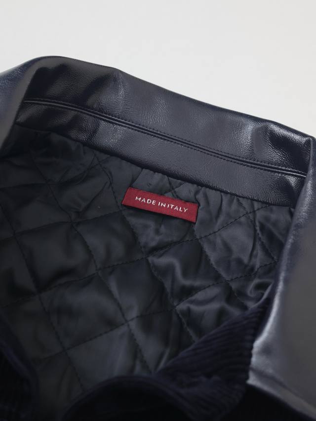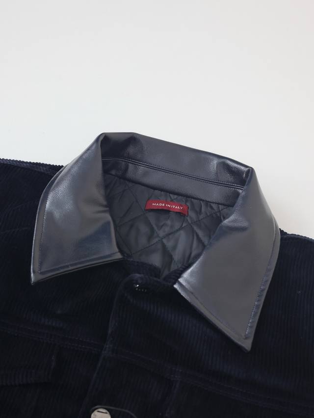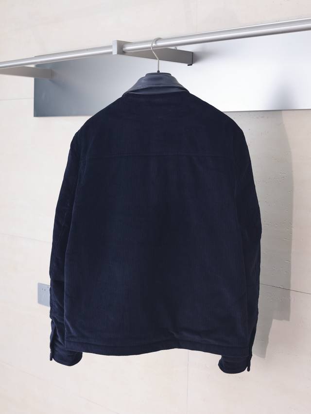Imported corduroy fabric, cotton plaid lining, cow leather collar, original factory hardware accessories, produced by a large factory, exquisite workmanship, plaid and pockets are decorated with metal buckles, chest pocket is decorated with letter embroidery logo using positioning embroidery technology, German imported machine full three-dimensional process