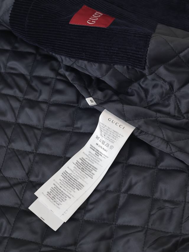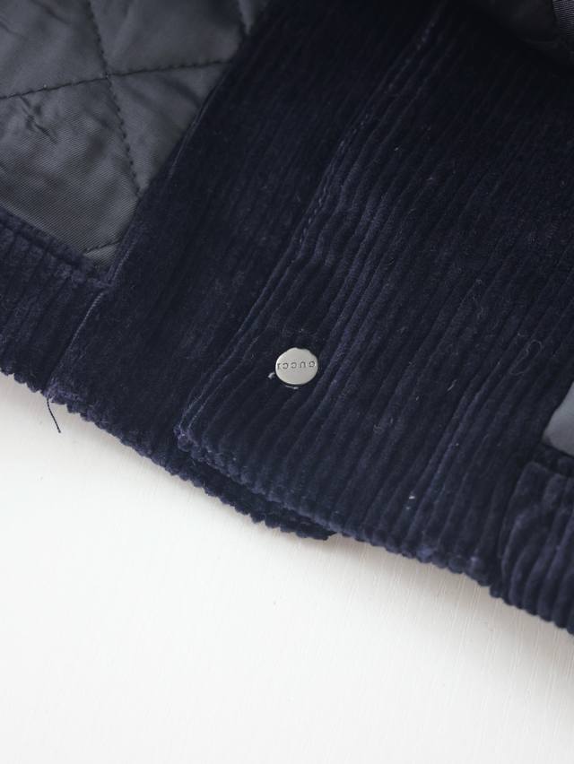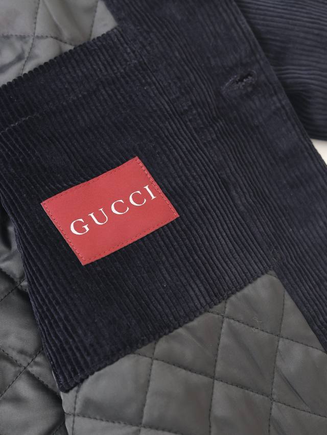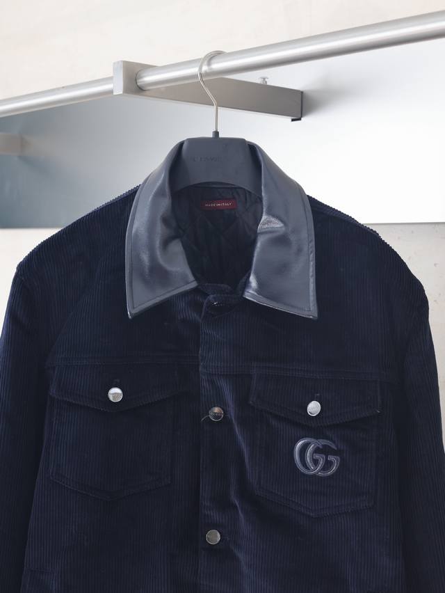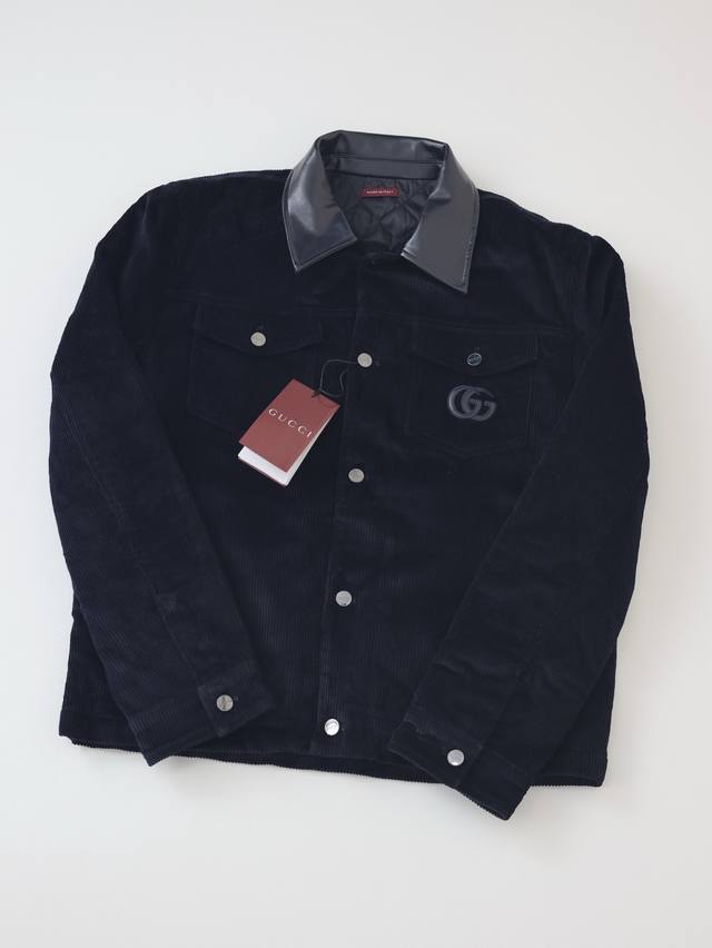 Gucc* Gucci 2025 Autumn/Winter New Corduroy Leather Collar Embroidered Jacket Im
