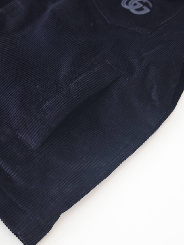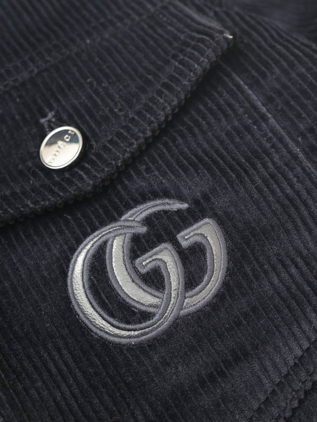 Gucc* Gucci 2025 Autumn/Winter New Corduroy Leather Collar Embroidered Jacket